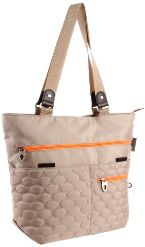 Grab your gear and go with this versatile handbag. 23 plastic bottles were repurposed in the making of this handbag! ; Materials are lightweight and water resistant for everyday versatility. Made from low-impact leather and reclaimed PET fabrics. Contrasting zipper in corresponding liner color. Dual shoulder straps. Top zip closure. Interior lining with a back wall zip pocket and multifunctional slip pockets. Front exterior zip and slip pockets. Rear exterior slip pocket. Lead, nickel and cadmium-free hardware. Universal headphone access. Leather sunglass loop. Elastic leash key fob. Detachable wallet organizer. Tap and Go feature for metro card. Bottom Width: 15 in ; Middle Width: 16 in ; Top Width: 16 in ; Depth: 4 1 2 in ; Height: 12 1 2 in ; Handle Length: 23 in ; Handle Drop: 11 in ; Weight: 1 lb